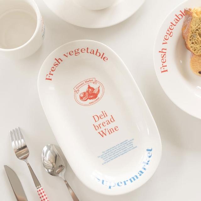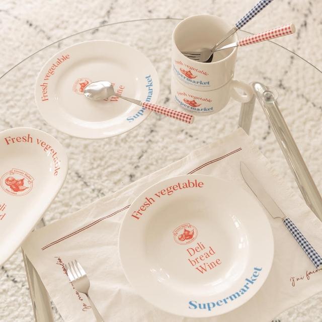 MYUMYU 沐慕家居英文字盤陶瓷餐具 法式碗 碗盤組 沙拉碗 耐熱餐具 韓式餐具 線條餐具 圓盤