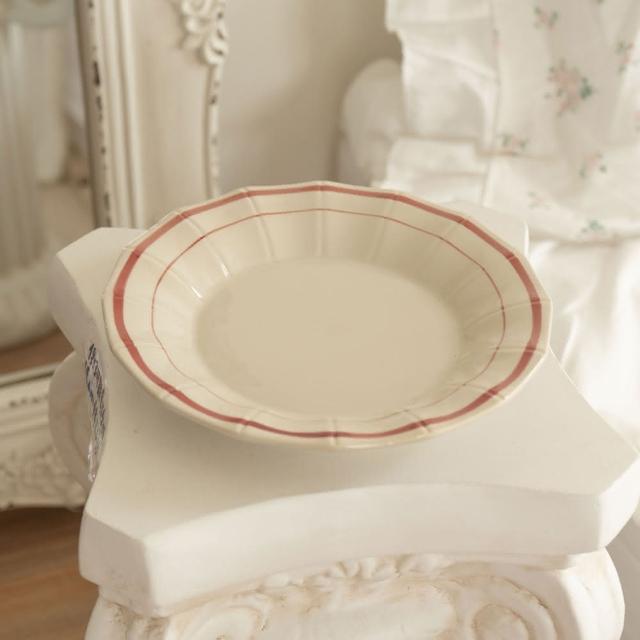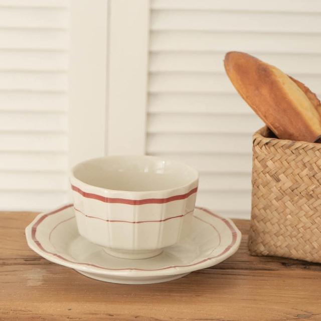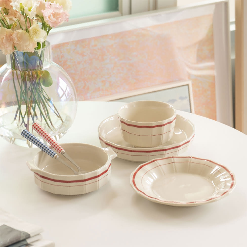 MYUMYU 沐慕家居韓式紅線條碗陶瓷餐具 碗盤組 韓系碗 耐熱餐具 韓式餐具 可微波 可烘乾 圓盤