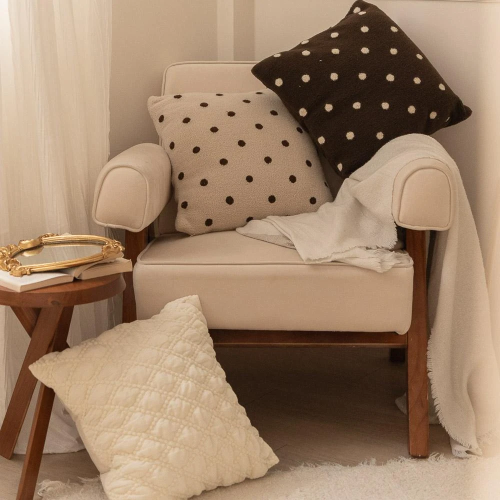 MYUMYU 沐慕家居抱枕套 焦糖奶茶色 泡泡格 靠枕套 枕套 針織枕套 抱枕套 點點枕套