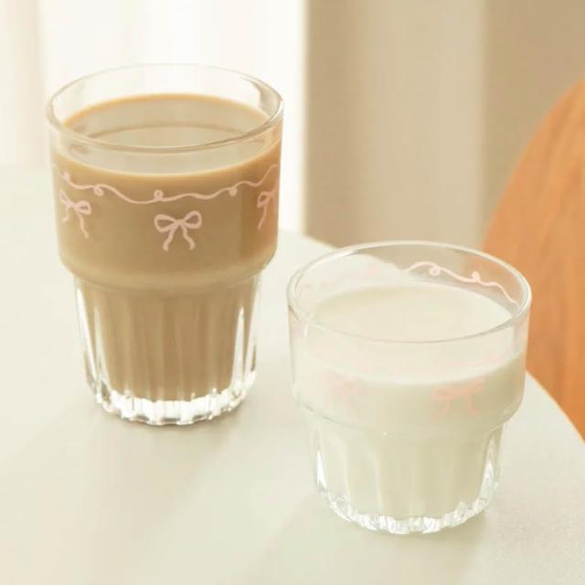 MYUMYU 沐慕家居蝴蝶結水杯 耐熱玻璃蝴蝶結水杯 冷飲咖啡杯 牛奶飲料杯 創意玻璃水杯