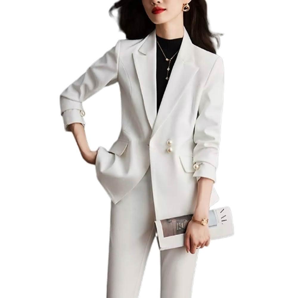 巴黎精品極速出貨 西裝套裝兩件套珍珠扣外套長褲修身女西服2色p1al51