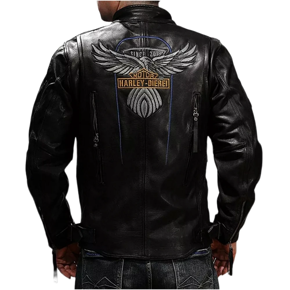 巴黎精品現貨+預購 真皮皮衣牛皮夾克哈雷老鷹刺繡機車男外套p1ay18