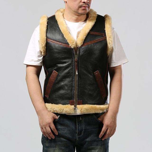 巴黎精品現貨+預購 真皮皮衣綿羊皮背心-皮毛一體馬甲V領男外套2色p1ay78