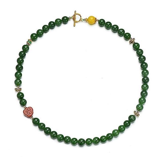 巴黎精品現貨+預購 碧玉項鍊925純銀銀飾10mm南紅如意蜜蠟女飾品p1ax20