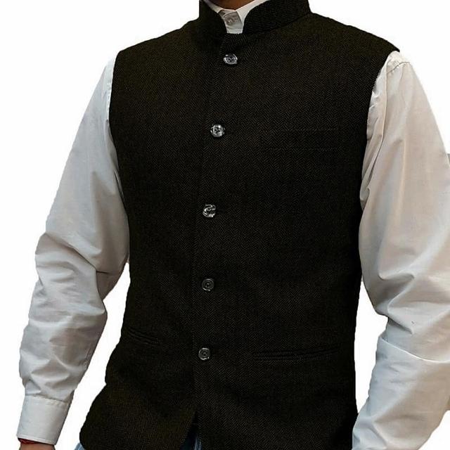巴黎精品現貨+預購 西裝背心西服馬甲中山領人字紋修身百搭男外套13色a1ad3