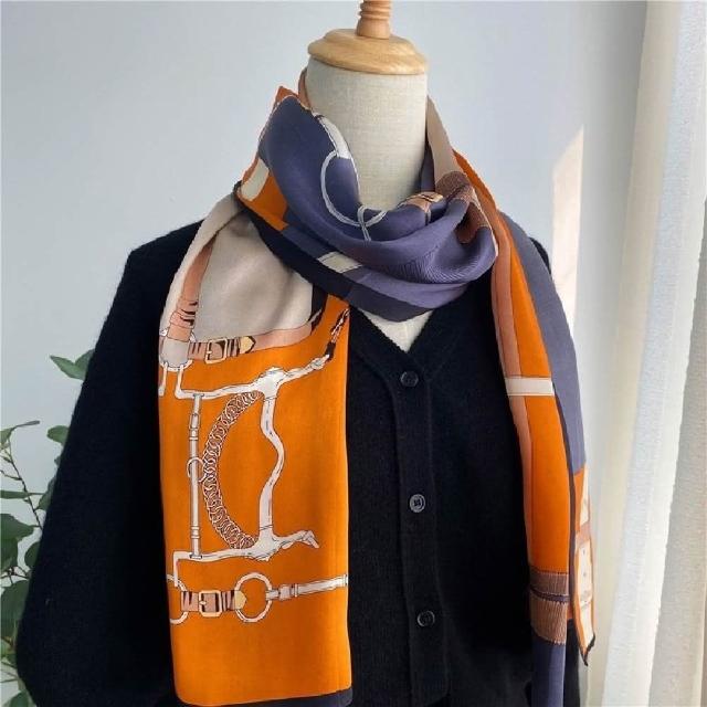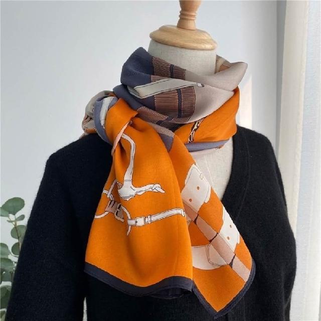 巴黎精品現貨+預購 絲質絲巾領巾時尚橘色皮扣披肩女絲巾a1af70