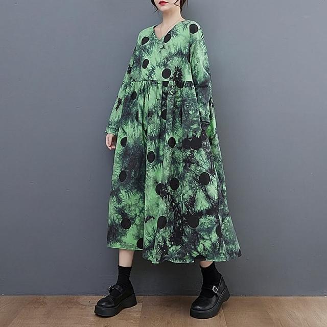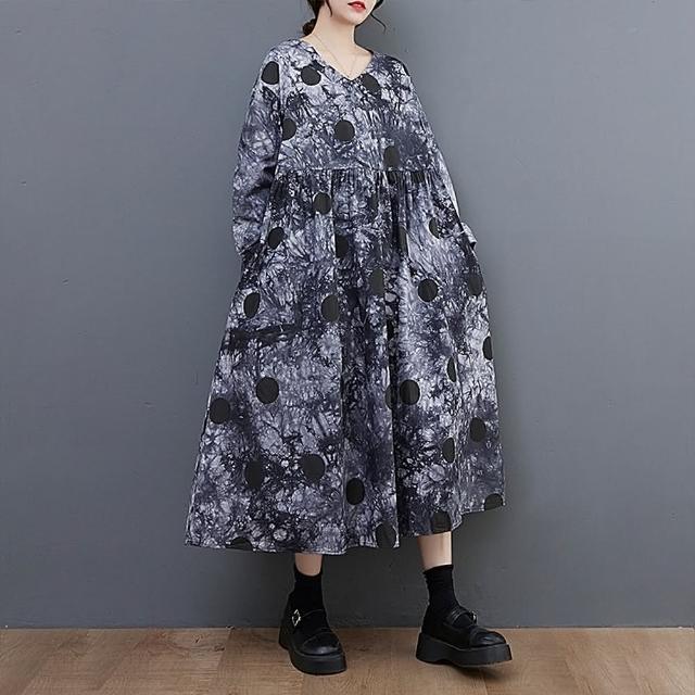 巴黎精品現貨+預購 洋裝長袖連身裙森系圓點印花高腰女裙子2色a1ap48