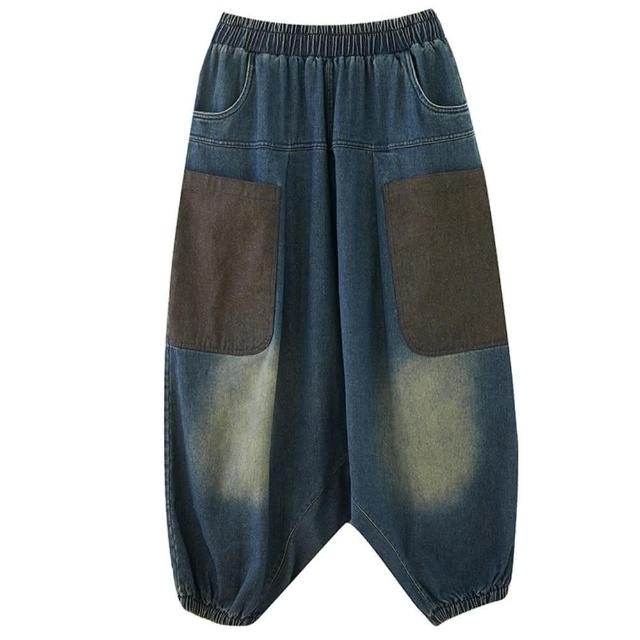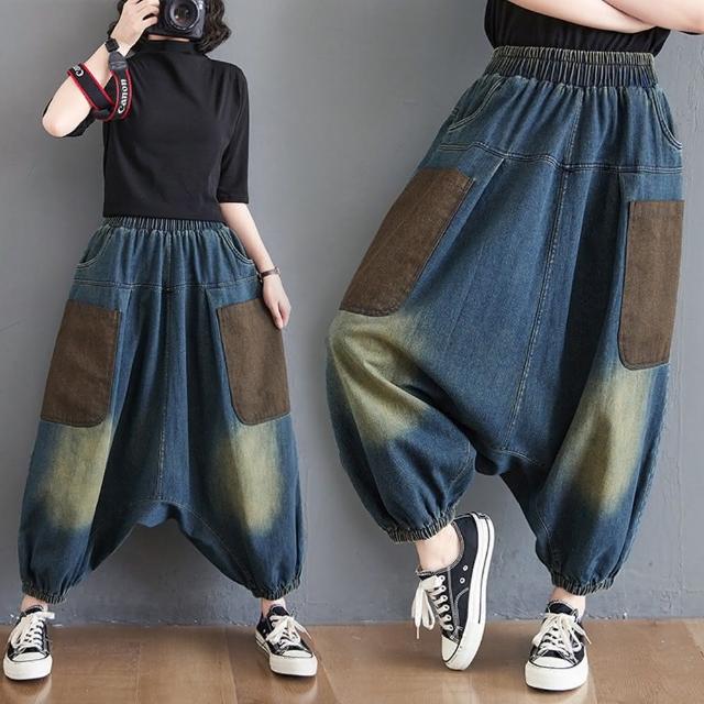 巴黎精品現貨+預購 高腰牛仔褲丹寧長褲大碼寬褲直筒褲裙落地褲休閒女裝(寬鬆貼布飛鼠褲女褲子a1aq2)