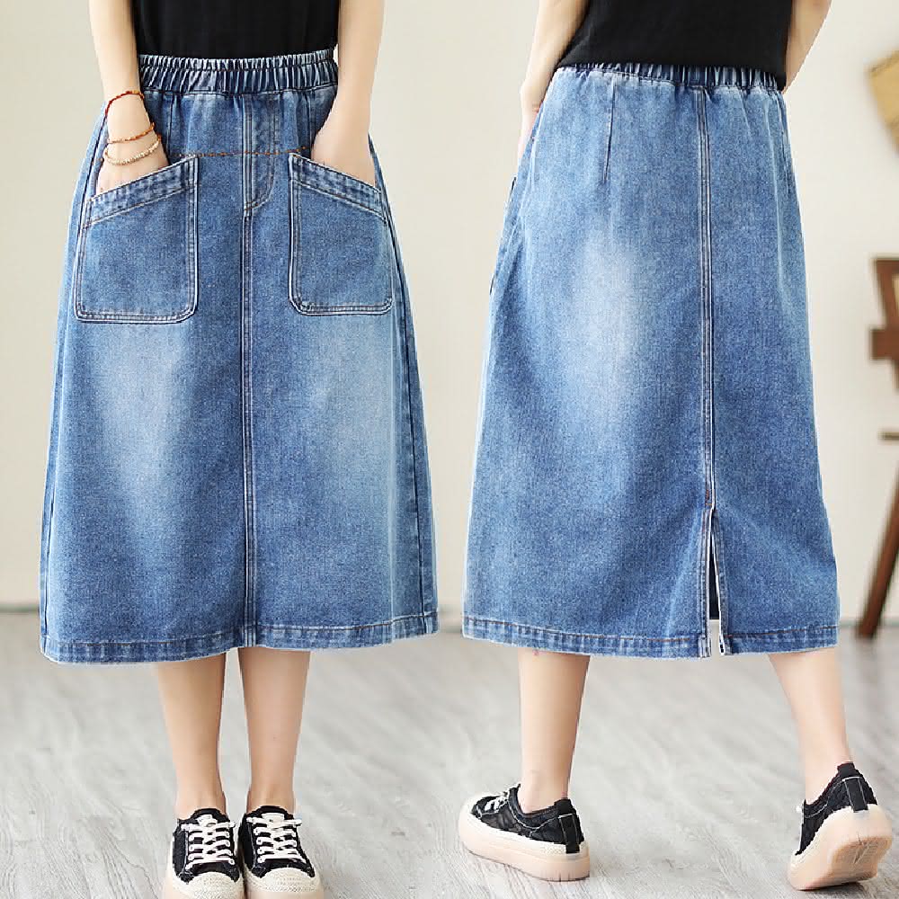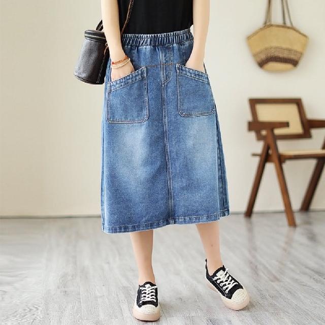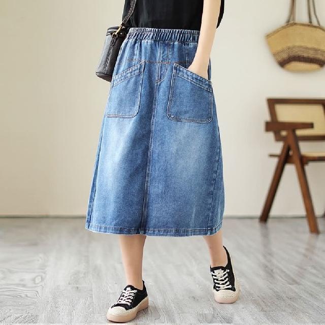 巴黎精品現貨+預購 女半身裙A字裙網紗裙中長裙百褶裙子大碼洋裝休閒大尺碼女裝(復古簡約口袋牛仔a1bn67)