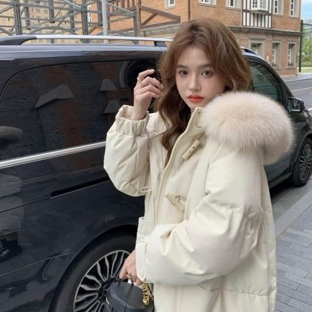 巴黎精品現貨+預購 真羽絨90%白鴨絨羽絨衣羽絨外套-保暖連帽狐狸毛領木頭扣女外套3色a1do10