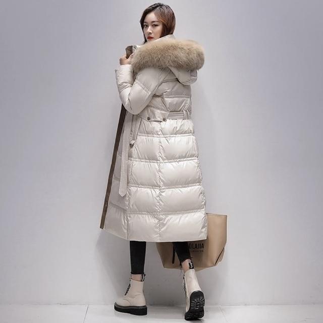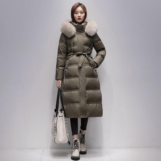巴黎精品現貨秒發 真羽絨90%白鴨絨羽絨衣羽絨外套-保暖狐狸毛領長款收腰女外套3色a1do13