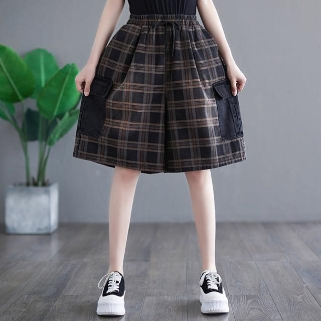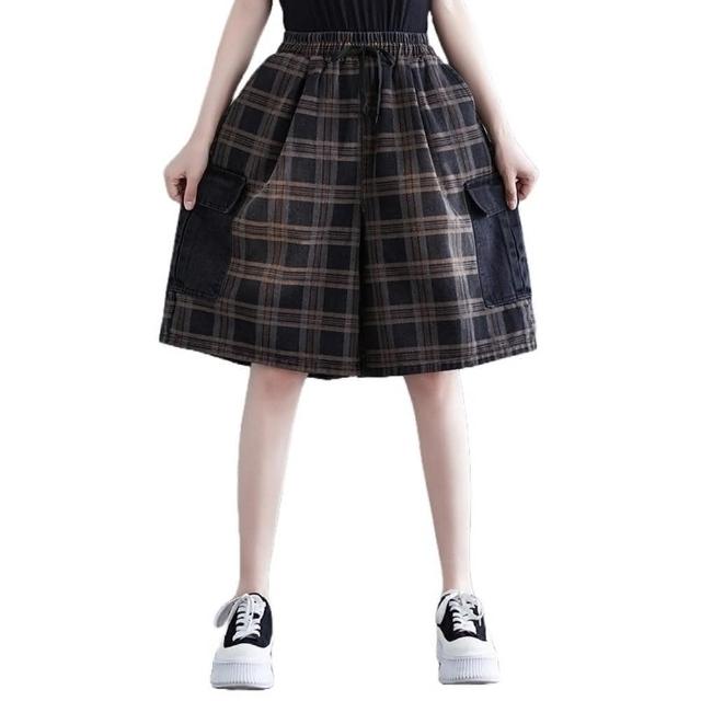 巴黎精品現貨+預購 牛仔褲丹寧短褲高腰牛仔短褲A字短褲休閒褲大碼寬褲大尺碼女裝-格紋寬管女褲子a1fe9