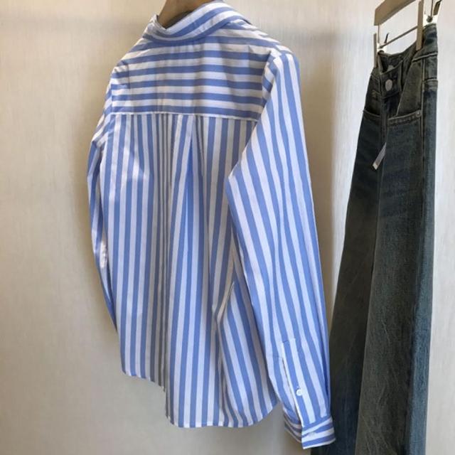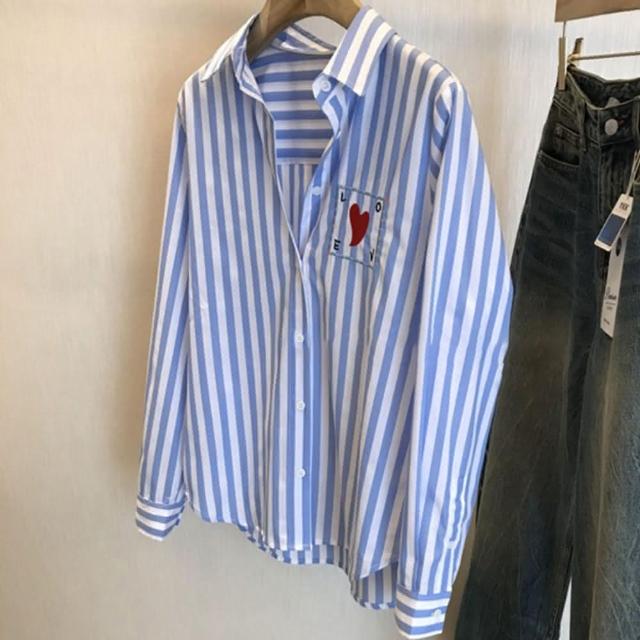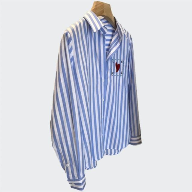 巴黎精品現貨+預購 襯衫長袖上衣藍白條紋愛心刺繡女裝a1ge21