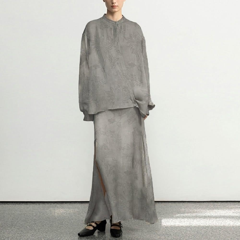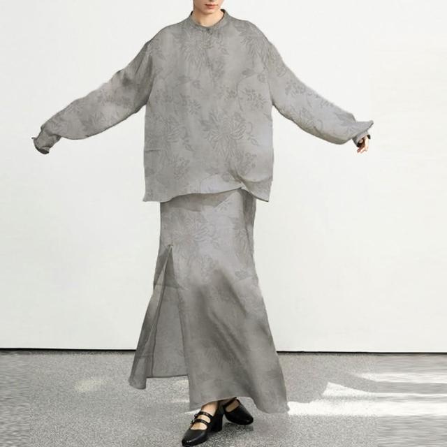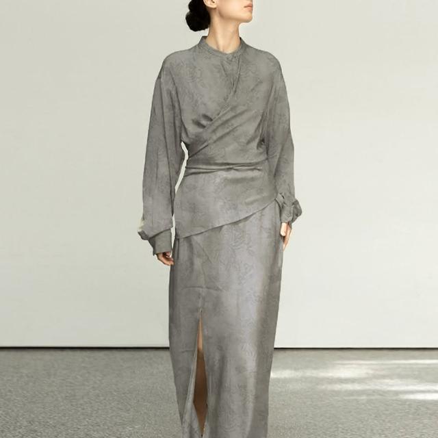 巴黎精品現貨+預購 長袖套裝兩件式裙裝襯衫綁帶提花長裙女裝a1gq64