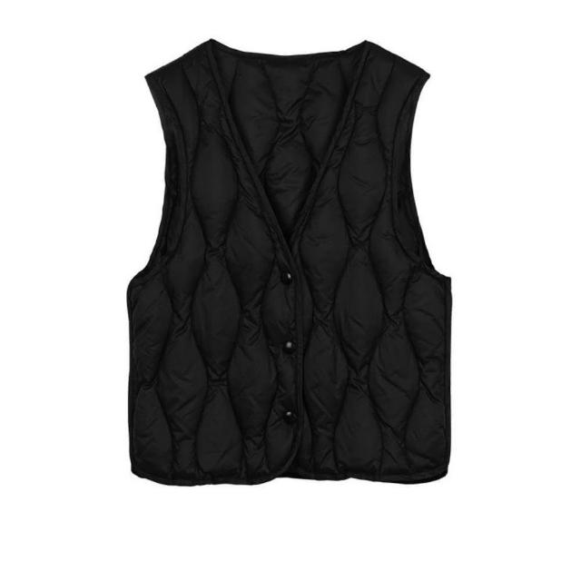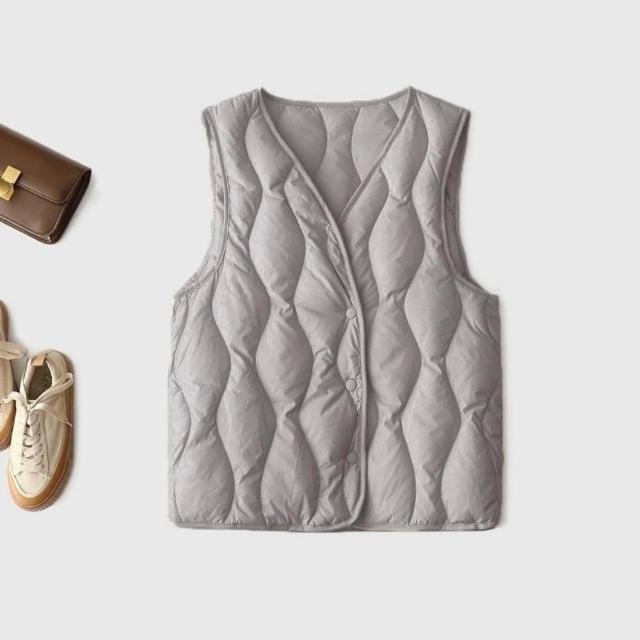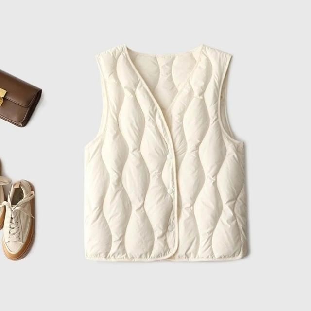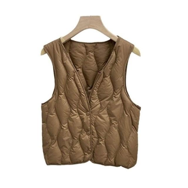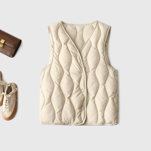 巴黎精品現貨+預購 真羽絨90%白鴨絨羽絨背心羽絨衣外套-保暖V領打底波浪紋馬甲女外套5色p1bl4