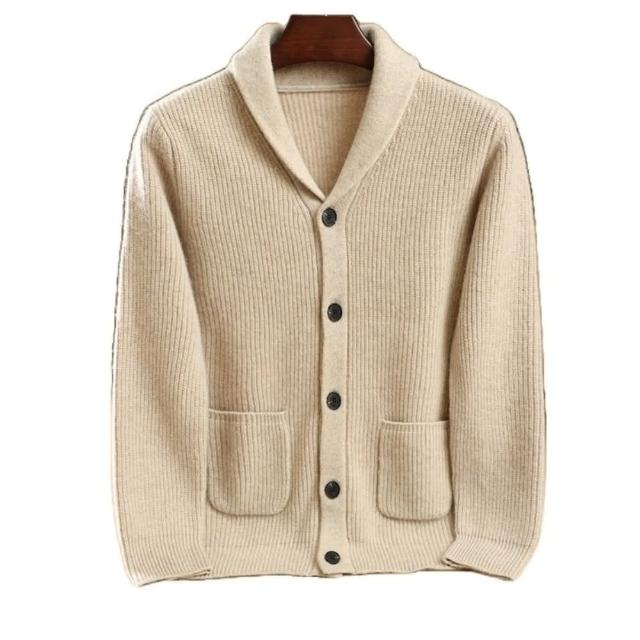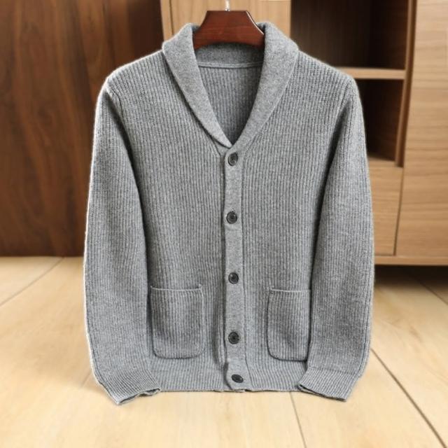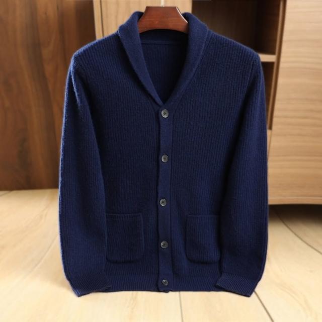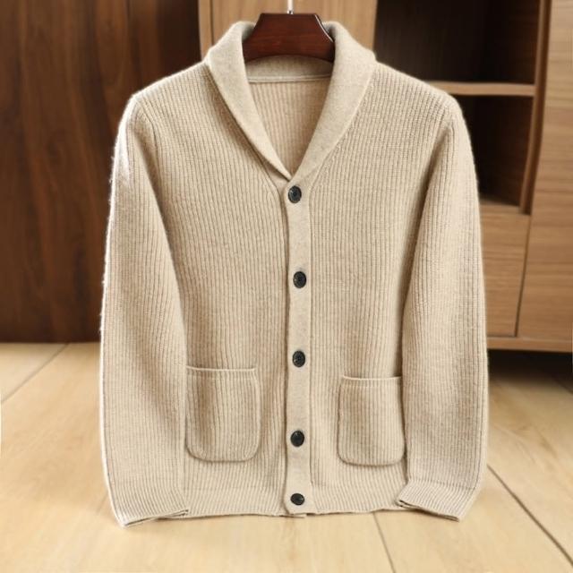 巴黎精品現貨+預購 100%羊毛外套針織毛衣-保暖時尚青果領開衫男外套4色a1ie7