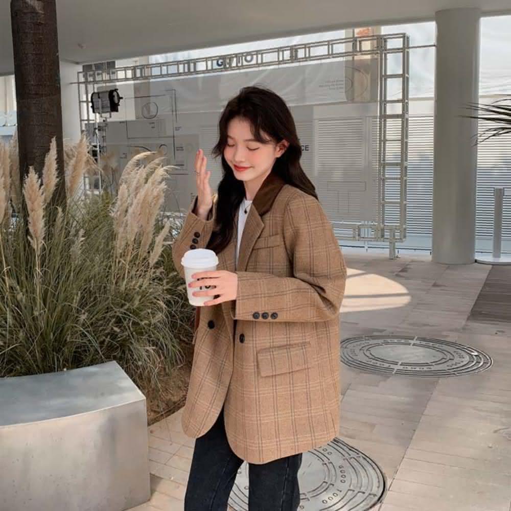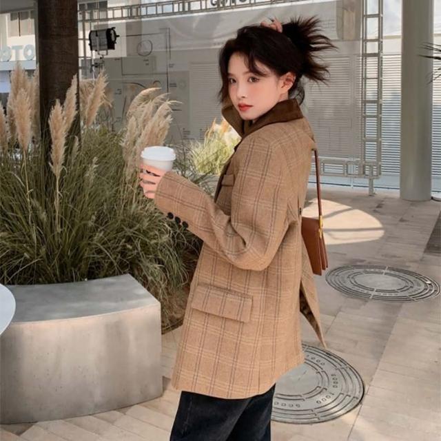 巴黎精品極速出貨 西裝外套毛呢西服-保暖復古格紋羊毛休閒女外套a1hs25