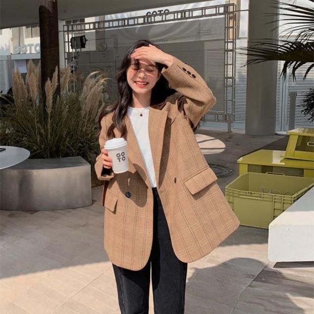 巴黎精品極速出貨 西裝外套毛呢西服-保暖復古格紋羊毛休閒女外套a1hs25