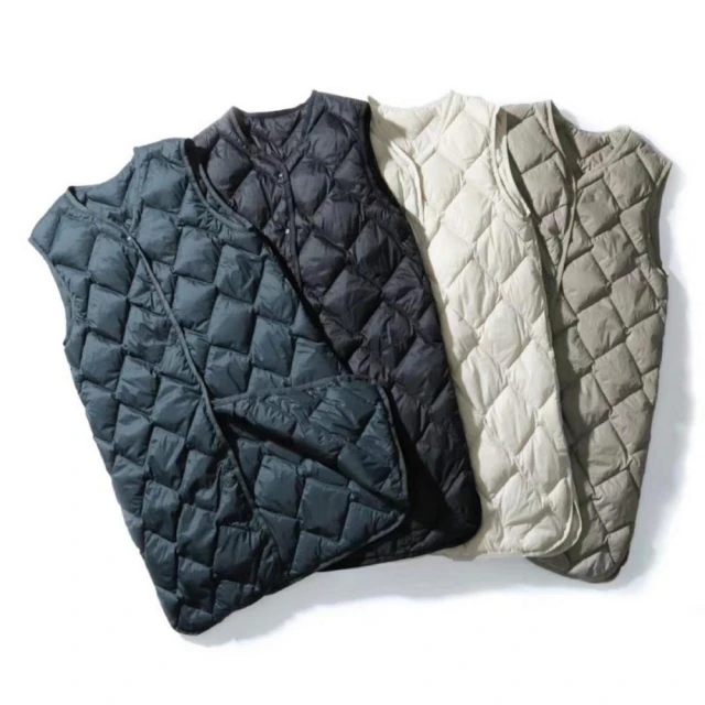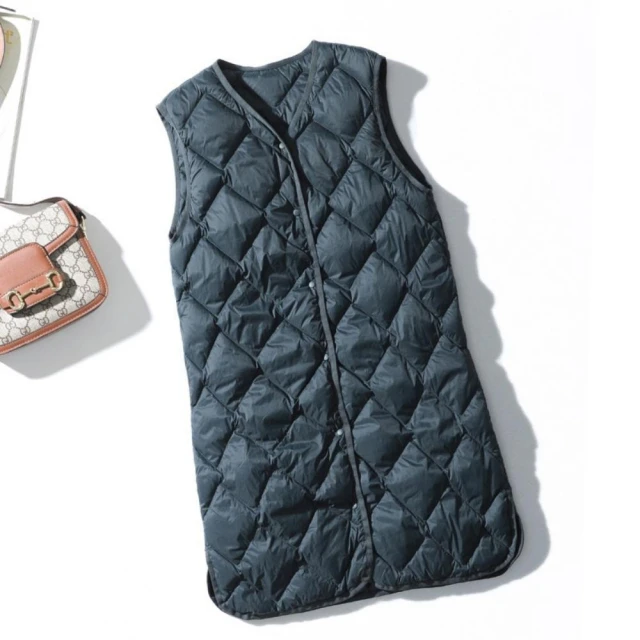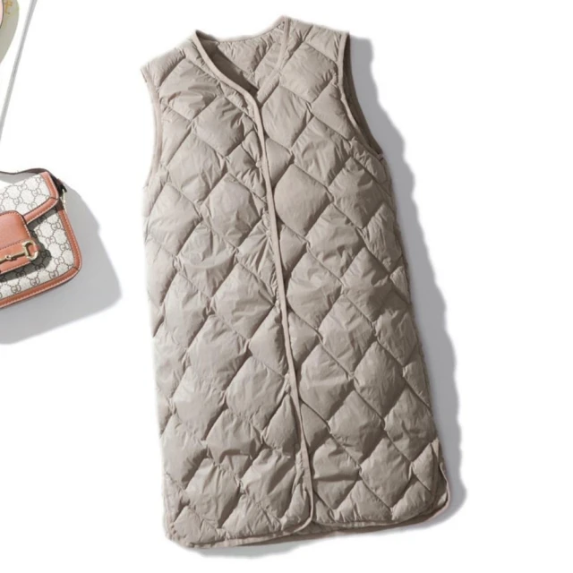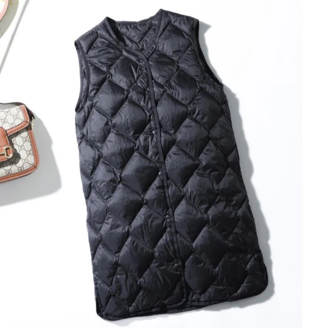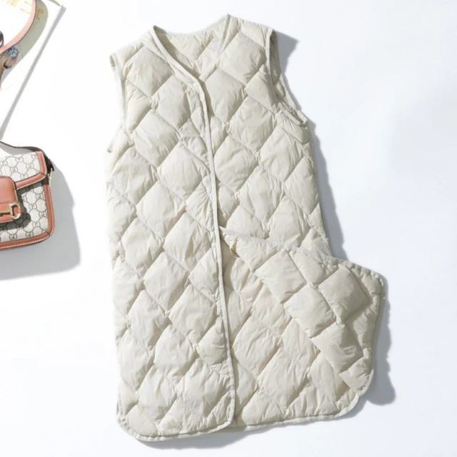 巴黎精品現貨秒發 真羽絨90%白鴨絨輕羽絨背心羽絨衣夾克-保暖V領菱格寬鬆中長款女外套4色a1hd7