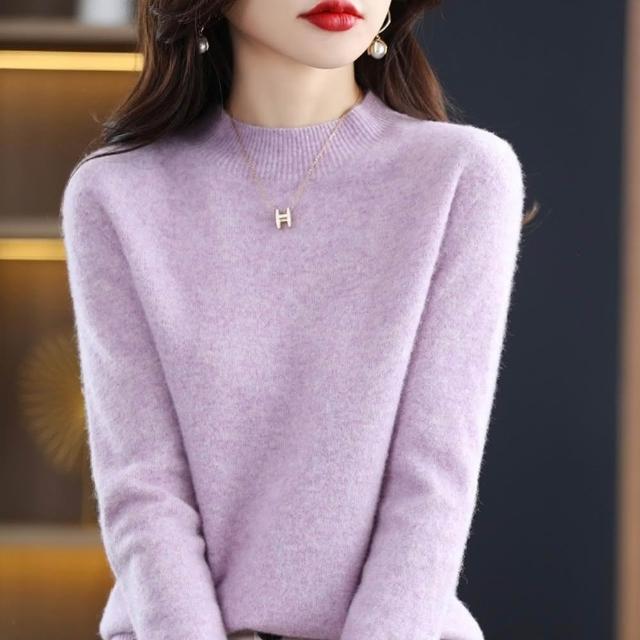 巴黎精品極速出貨 100%羊毛毛衣長袖針織衫-保暖氣質顯瘦純色半高領女上衣12色a1id1 2J