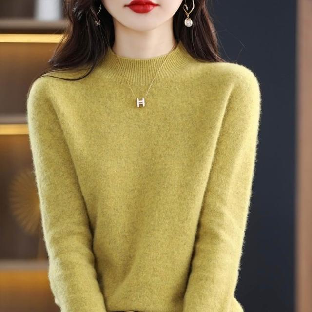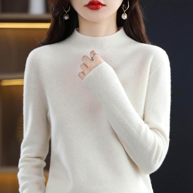 巴黎精品極速出貨 100%羊毛毛衣長袖針織衫-保暖氣質顯瘦純色半高領女上衣12色a1id1 2J