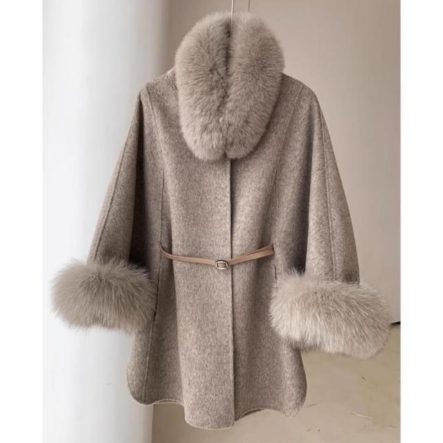 巴黎精品現貨+預購 羊毛大衣毛呢外套-保暖狐狸毛領中長版斗篷高級女外套3色a1ik2