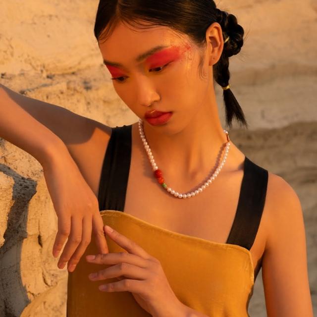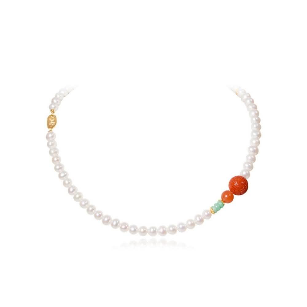 巴黎精品現貨+預購 珍珠項鍊南紅毛衣鏈-7mm翡翠鍍18K金中國結女飾品a1ha70
