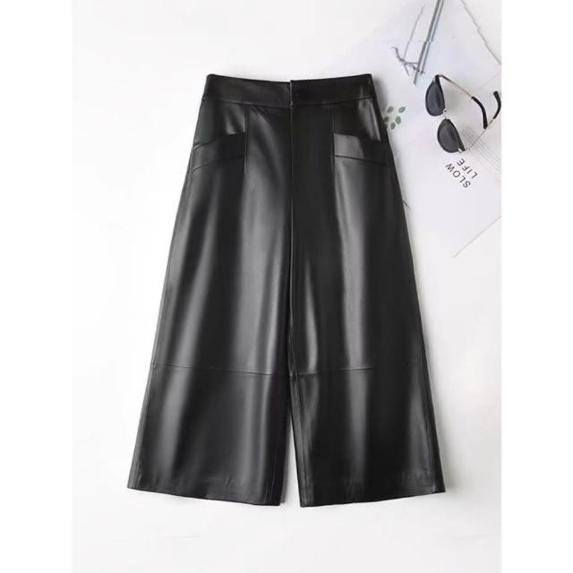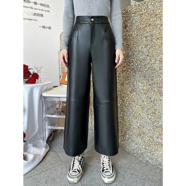 巴黎精品現貨+預購 皮褲真皮長褲-休閒闊腿九分褲女褲子a1iv39