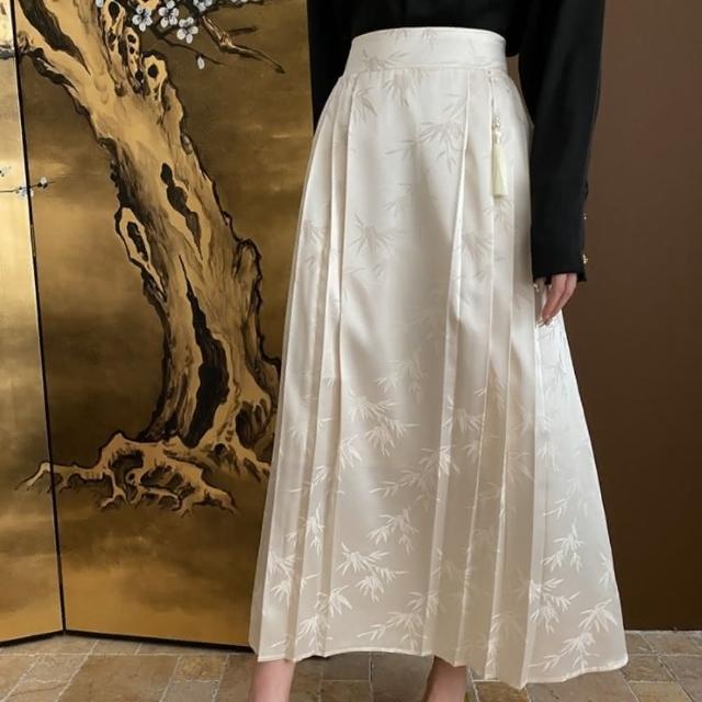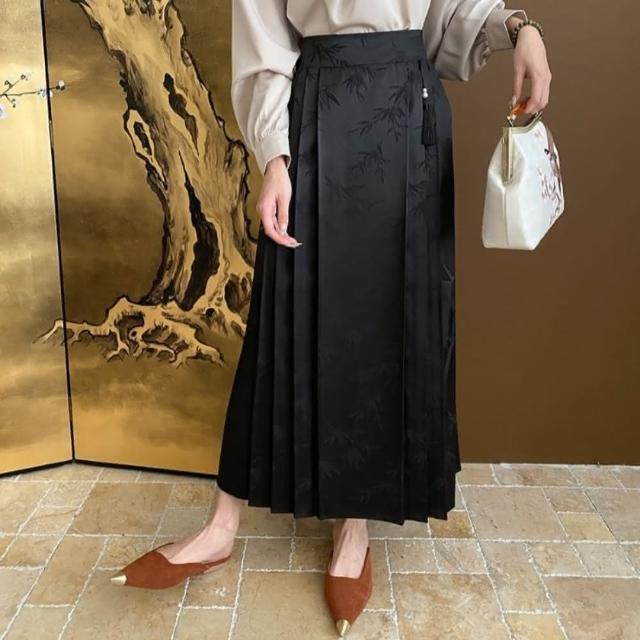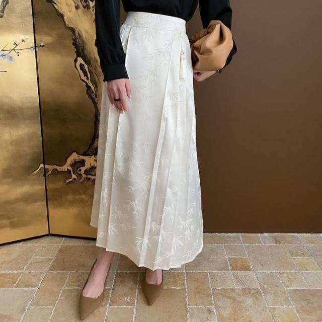 巴黎精品現貨+預購 女緞面半身裙絲質長裙法式絲綢大碼洋裝透氣休閒大尺碼女裝(竹紋馬面裙女裙子2色a1ga30)