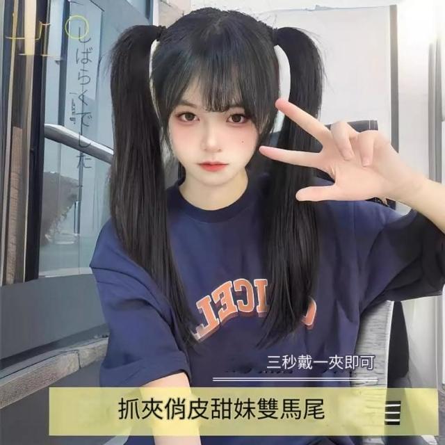 巴黎精品現貨+預購 長假髮透氣假髮輕量免打理隱形-假馬尾(單入)-抓夾雙馬尾微捲俏皮女假髮3色a1ft3