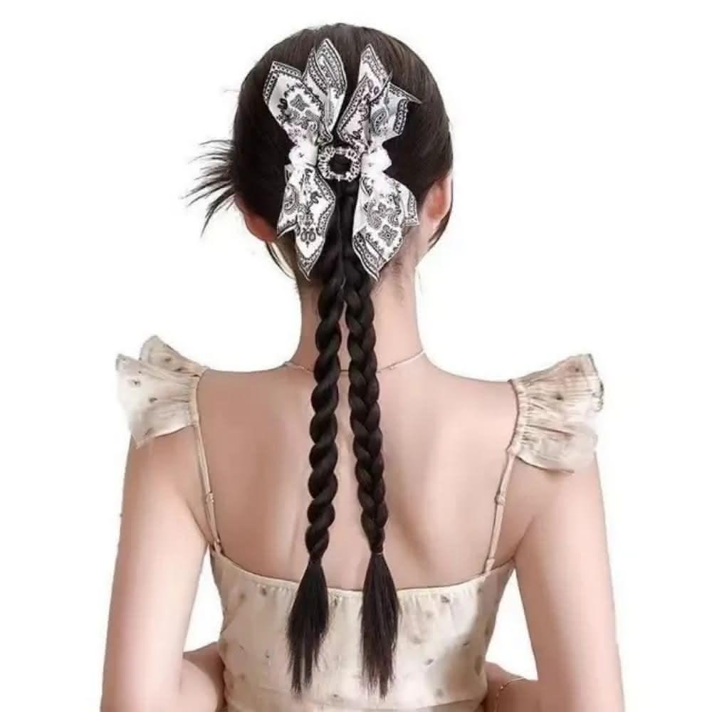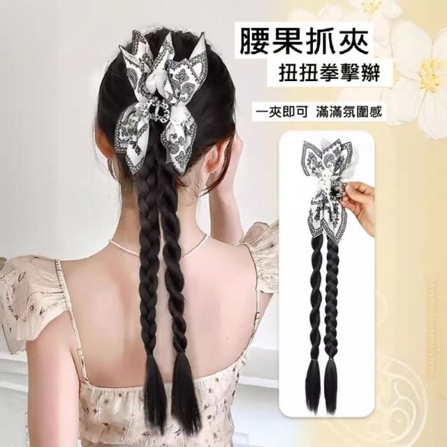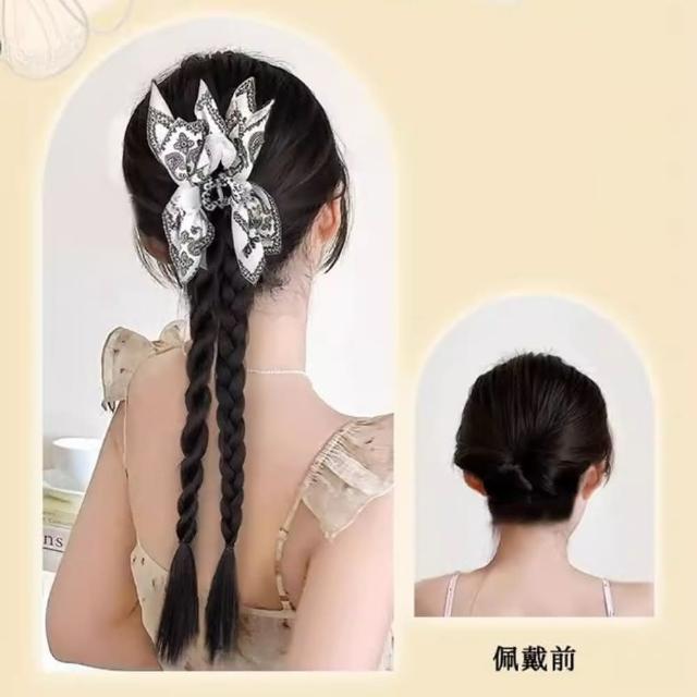 巴黎精品現貨+預購 長假髮透氣假髮輕量免打理隱形-假髮辮子(單入)-腰果花抓夾雙馬尾麻花辮女髮飾2色a1ft28