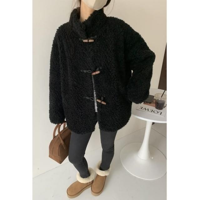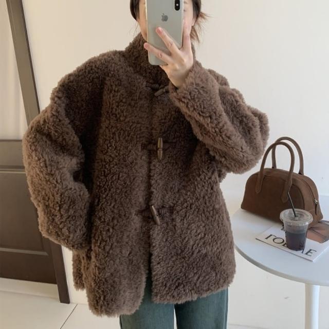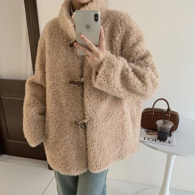 巴黎精品現貨+預購 羊羔毛外套皮草大衣-中長款牛角扣慵懶風女外套3色a1iu31
