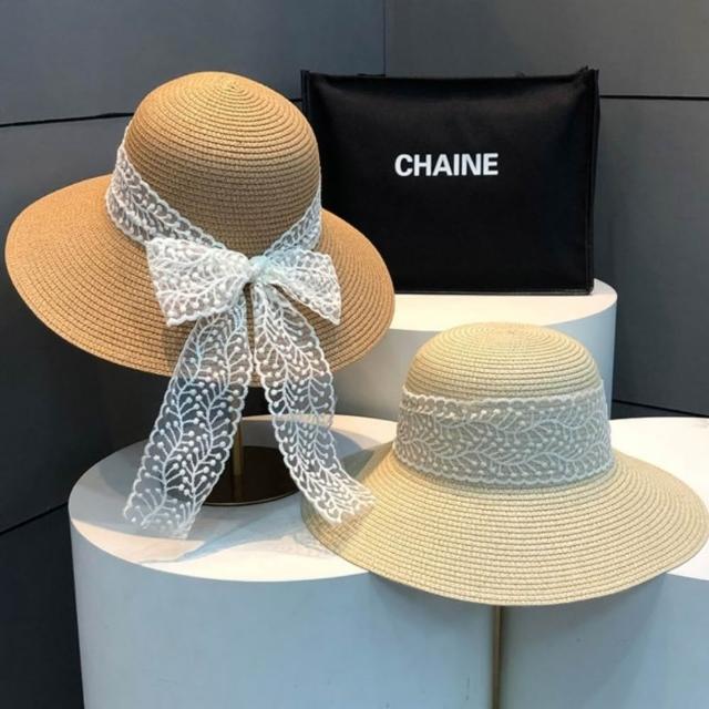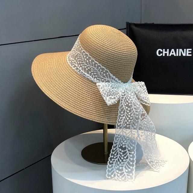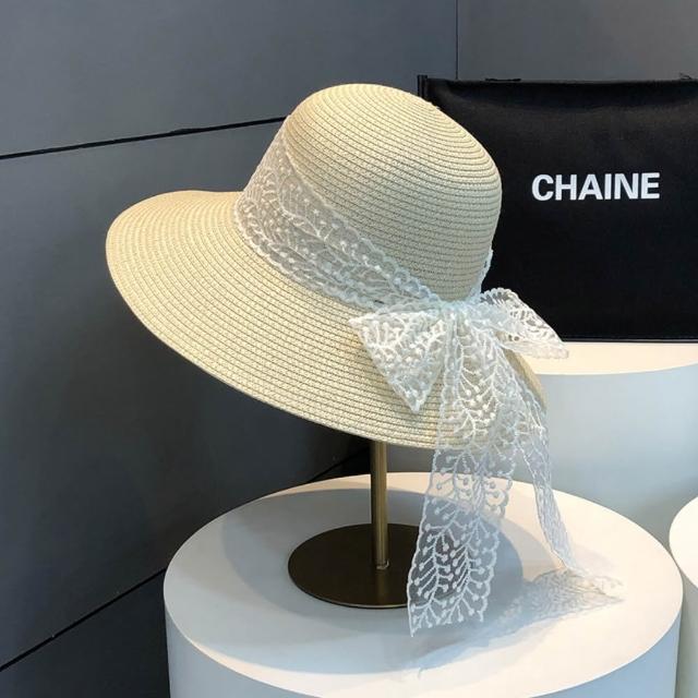 巴黎精品現貨+預購 渡假草帽高級法式遮陽帽名媛防曬帽禮帽草編帽子-圓頂蕾絲蝴蝶結女帽子2色a1kl60