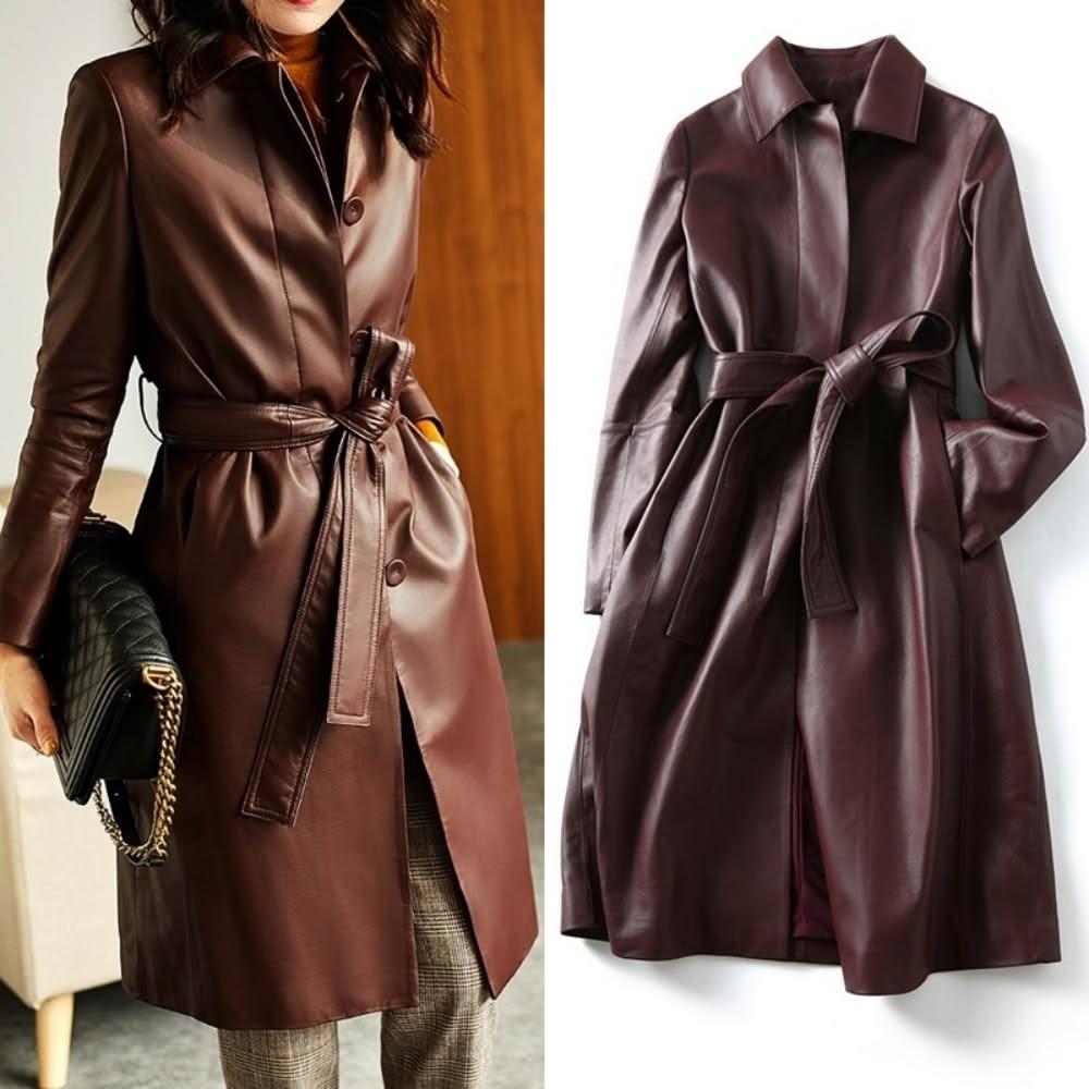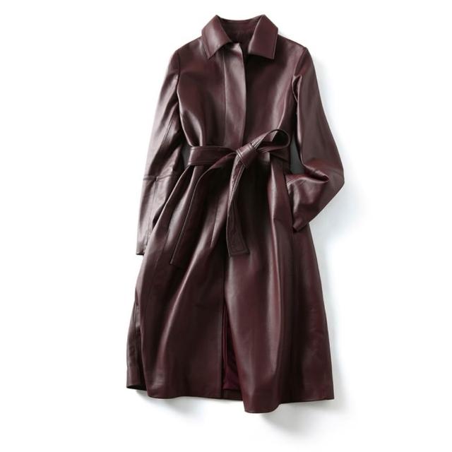 巴黎精品現貨+預購 頂級真皮皮衣外套真羊皮皮衣秋冬夾克休閒女裝(氣質真皮風衣女外套2色n1le2)