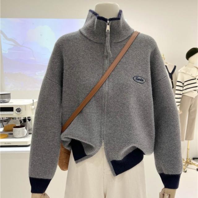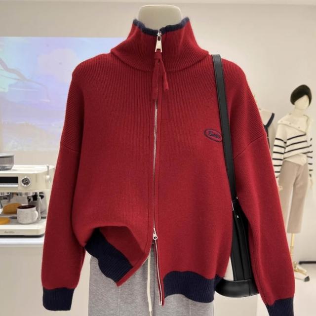 巴黎精品現貨+預購 法式針織外套寬鬆上衣針織衫毛衣大碼百搭休閒女裝(韓系復古撞色女外套3色a1lg19)