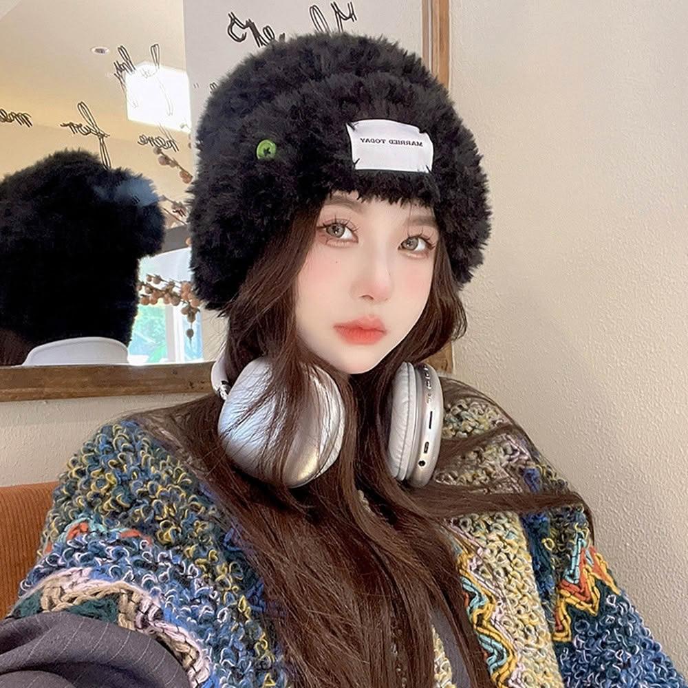 巴黎精品現貨+預購 韓版毛帽毛線帽子針織帽加絨厚磅保暖帽冷帽-毛茸茸盆帽4色a1mp97