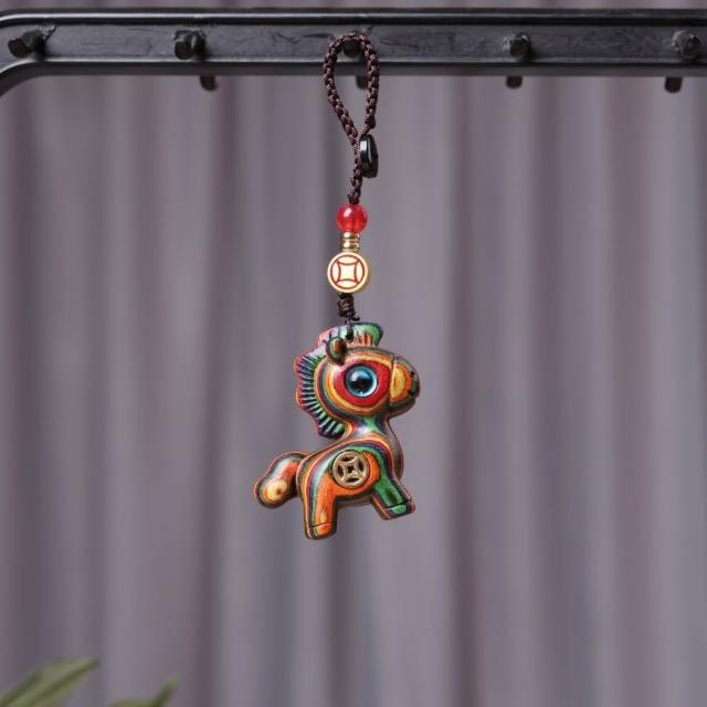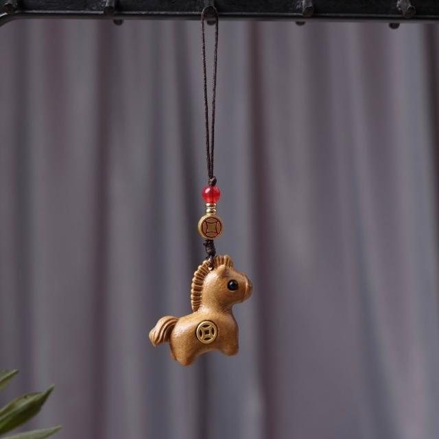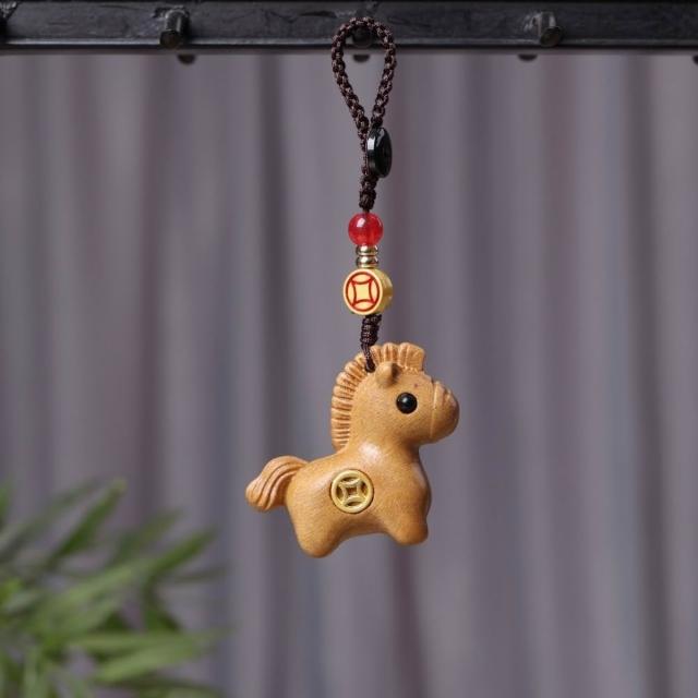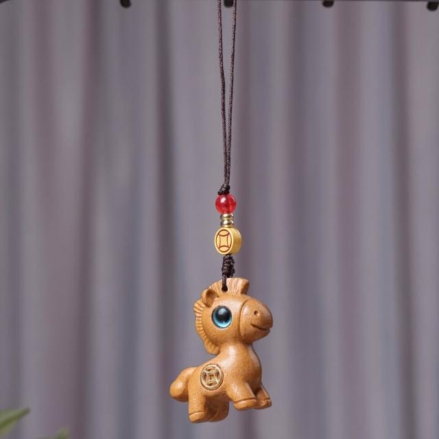巴黎精品極速出貨 檀木小馬手機掛飾鑰匙圈馬上有錢元寶轉轉包掛飾-招財開運收藏擺飾紀念品多款任選b1a20