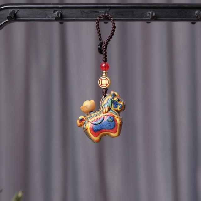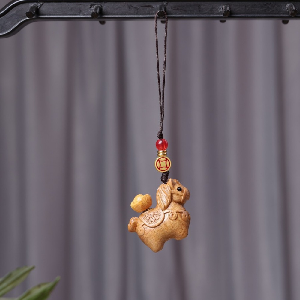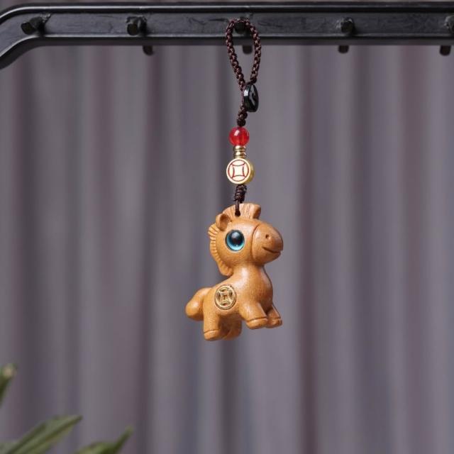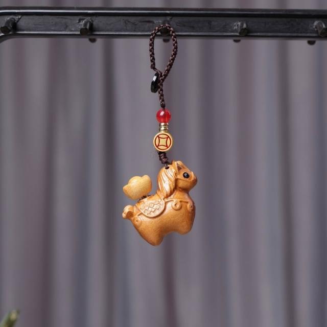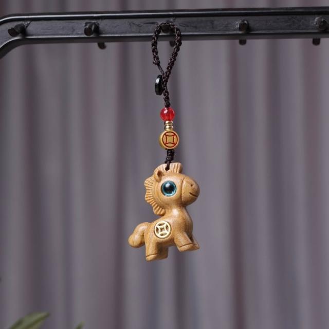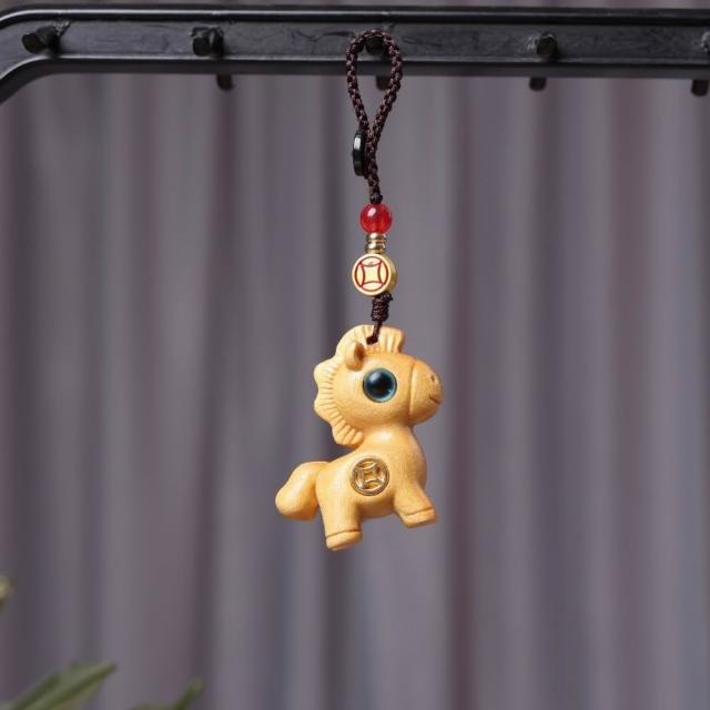 巴黎精品極速出貨 檀木小馬手機掛飾鑰匙圈馬上有錢元寶轉轉包掛飾-招財開運收藏擺飾紀念品多款任選b1a20