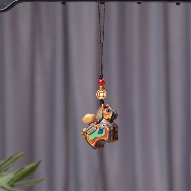 巴黎精品極速出貨 檀木小馬手機掛飾鑰匙圈馬上有錢元寶轉轉包掛飾-招財開運收藏擺飾紀念品多款任選b1a20