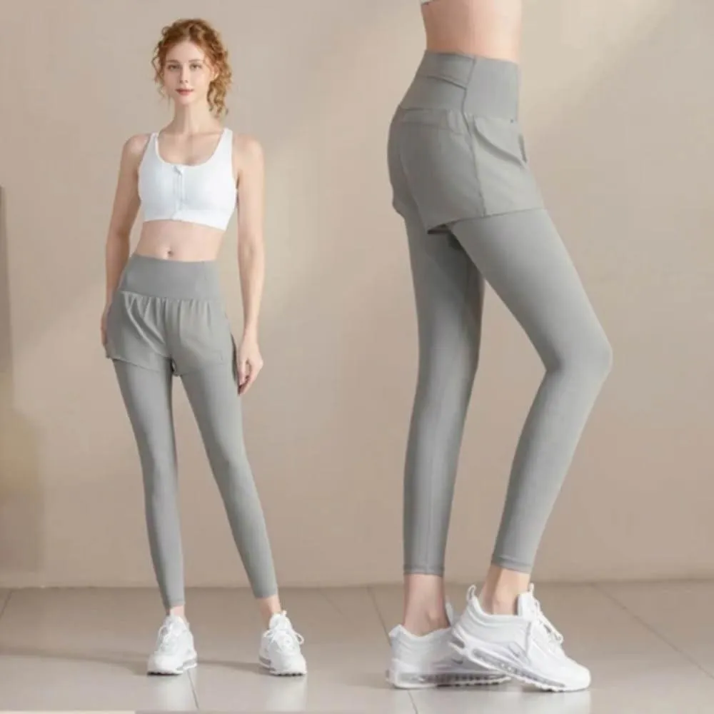 巴黎精品極速出貨 高腰瑜珈褲運動長褲運動褲緊身褲內搭褲收腹顯瘦瑜伽褲-假兩件遮臀彈力女褲子3款v1ay5