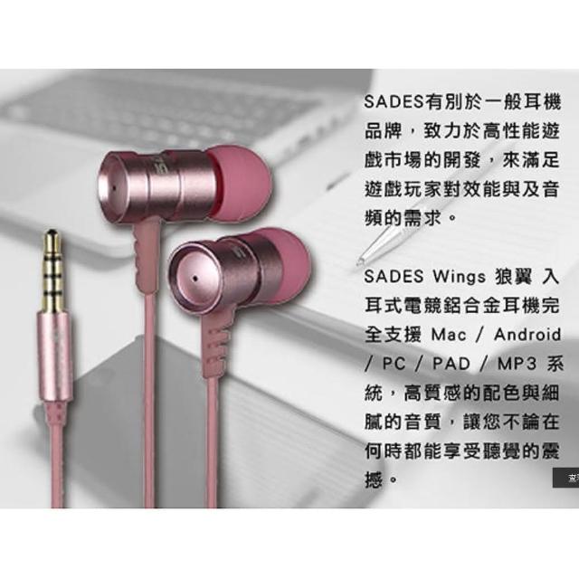 賽德斯 SADES Wings狼翼 SA-609入耳式電競鋁合金耳機耳塞式 玫瑰金特別版有線耳機