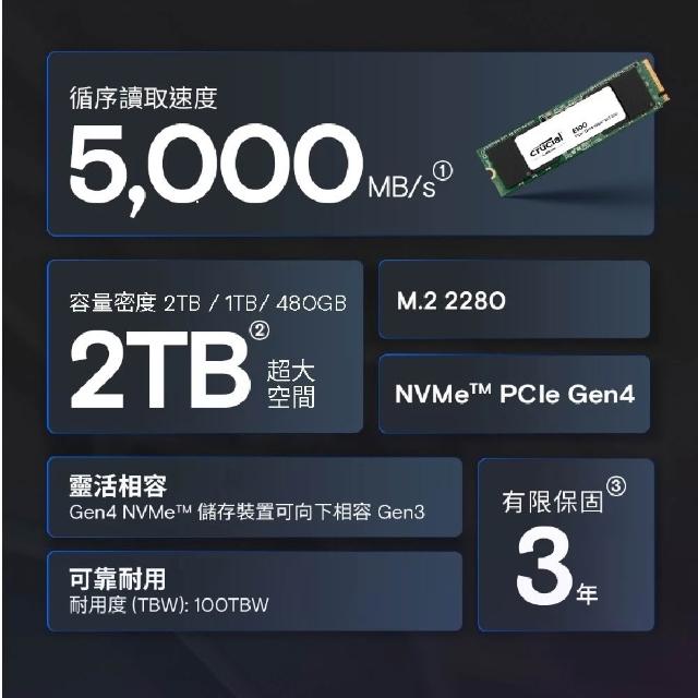 Crucial 美光Crucial E100 M.2 PCIe 4.0/SSD固態硬碟