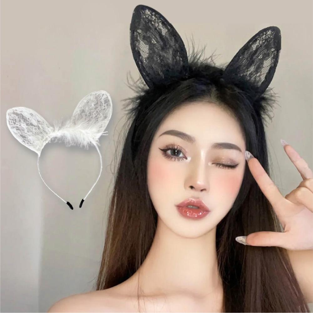Mr.情趣蕾絲兔子耳朵髮箍 24H出貨 髮箍 純欲風 獸耳 動物髮箍 兔耳朵 洗臉髮箍 網紅直播款 兔耳 網紅 直播道具