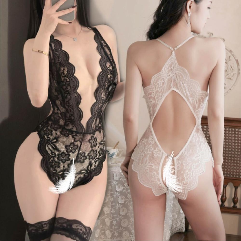 Mr.情趣透視開檔連身衣 24H出貨 蕾絲低胸 開檔免脫 法式睡衣 蕾絲鏤空 連體衣 深V蕾絲露背款 連身衣 蕾絲 開襠