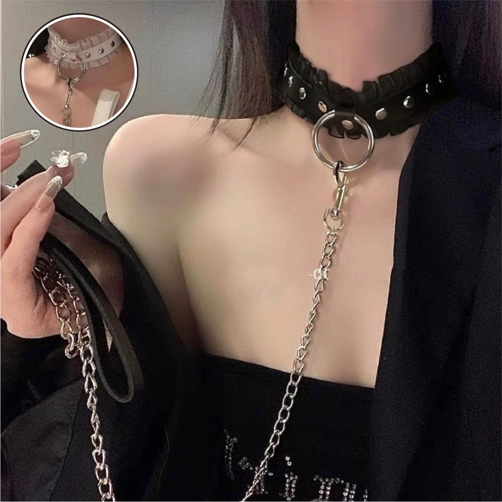 Mr.情趣花邊皮革頸圈 24H出貨 頸鍊 頸圈 蕾絲 花邊 皮革 皮革項圈 皮革頸鍊 角色扮演 日系風格 項圈 暗黑系 涉谷風