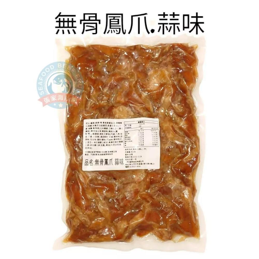 張家海陸網無骨鳳爪 600g-蒜辣味(煙燻.無骨.鳳爪.冷凍.涼拌小菜.解凍即食.下酒菜)