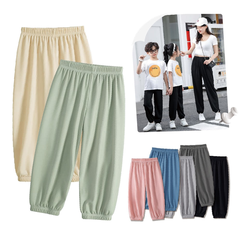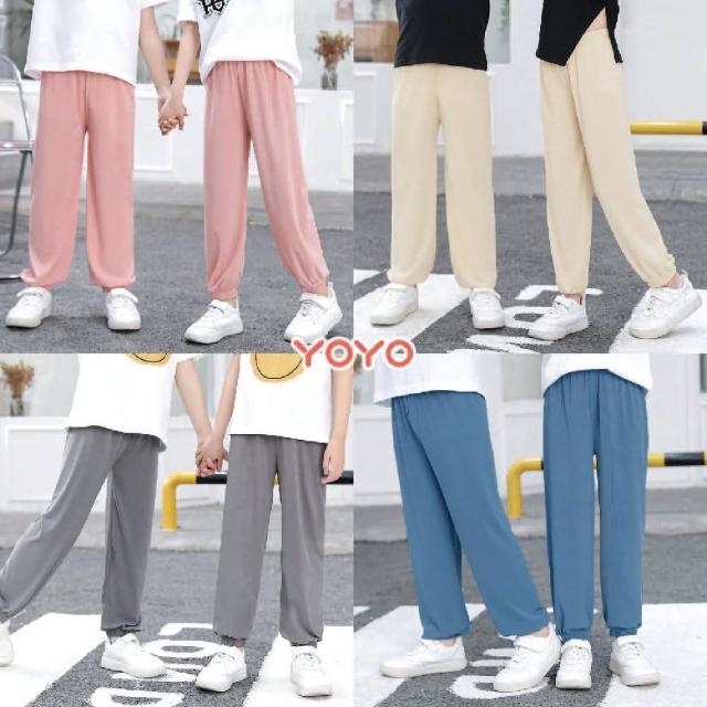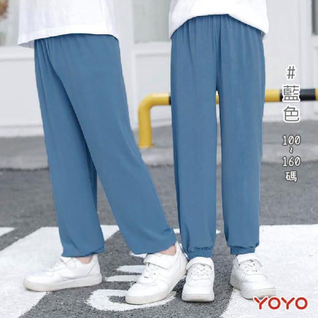 yoyo涼感 彈力牛奶絲 寬鬆束腳 中大童束口休閒長褲(彈力牛奶絲 寬鬆束腳 涼感 休閒長褲)