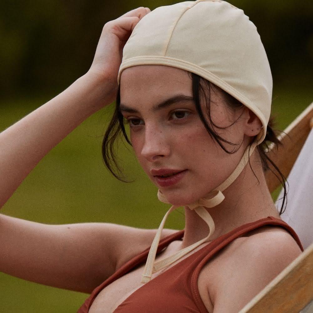 LeReve Paris復古綁帶泳帽(純粹白)