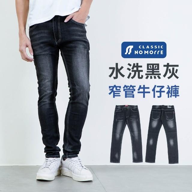 NoMorre牛仔褲 窄管牛仔褲 牛仔長褲 牛仔褲男 水洗彈力牛仔布 黑色 M-3L #5669
