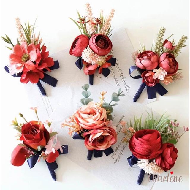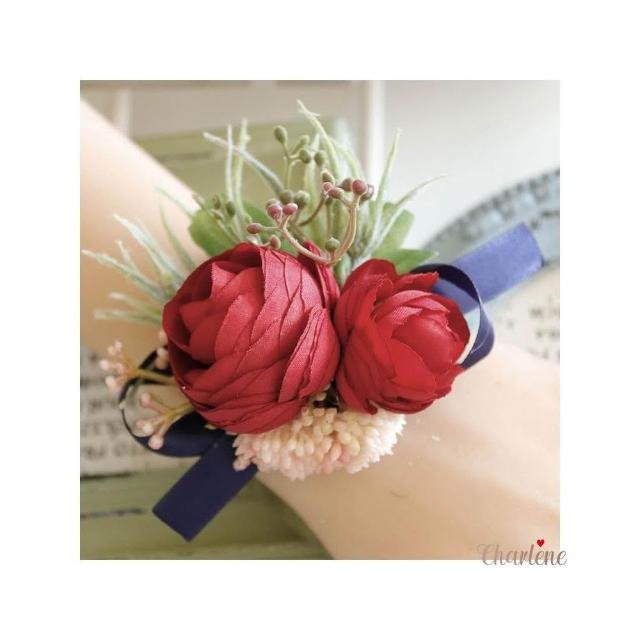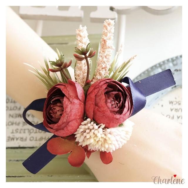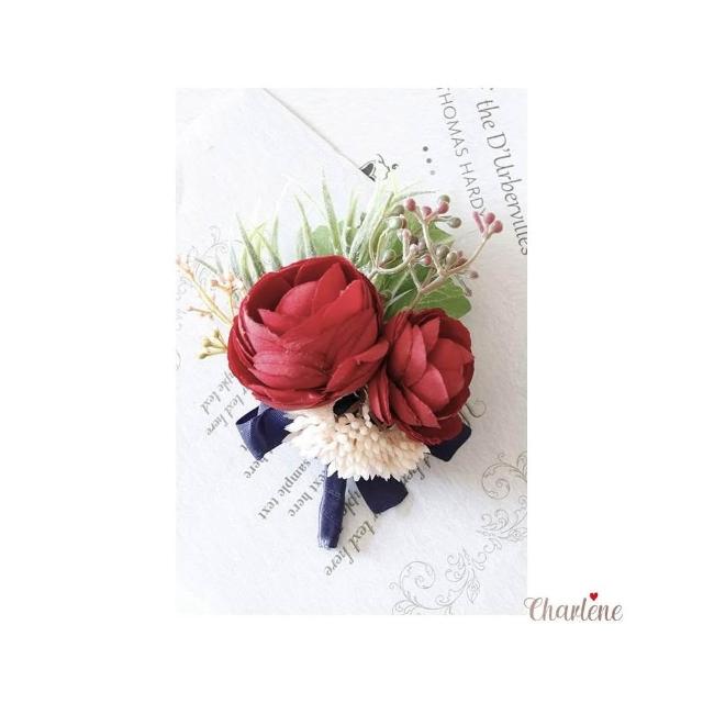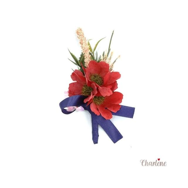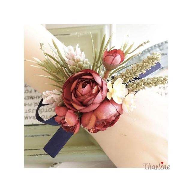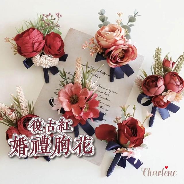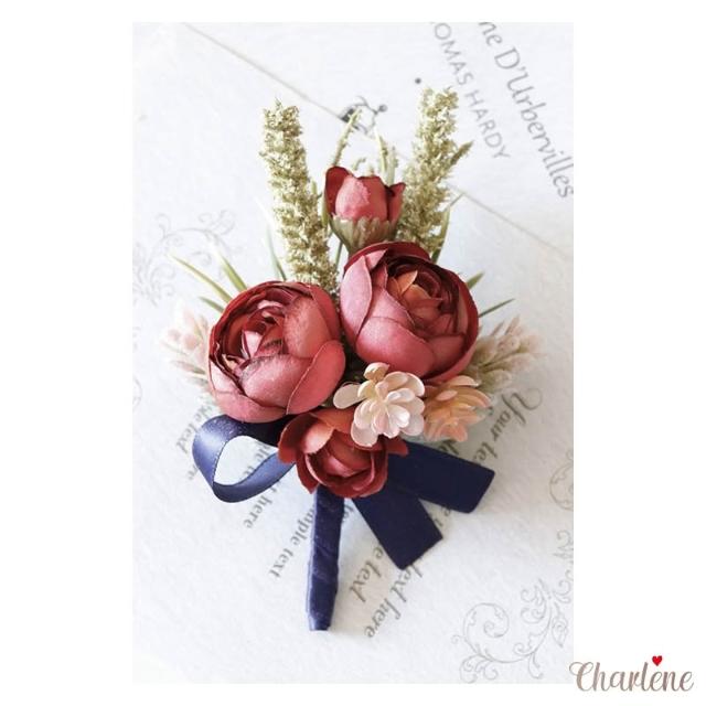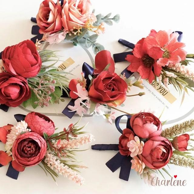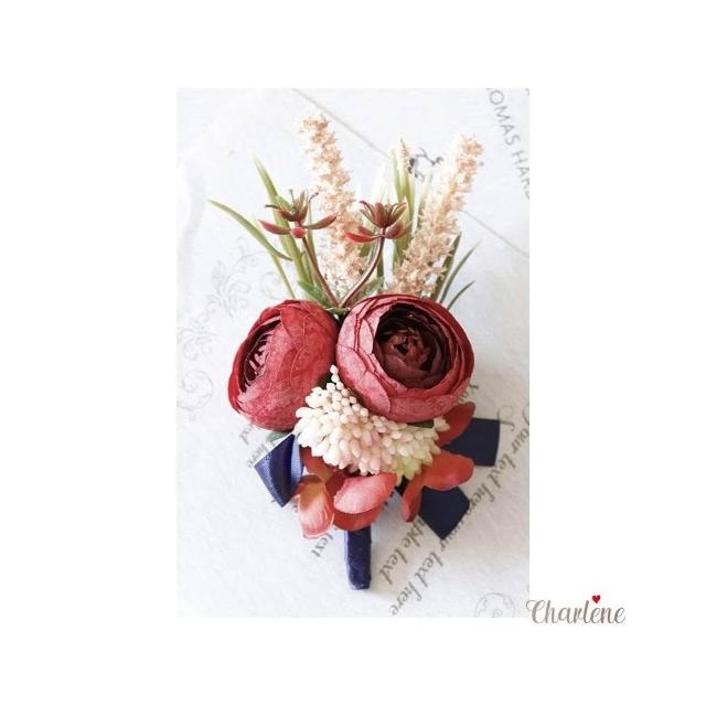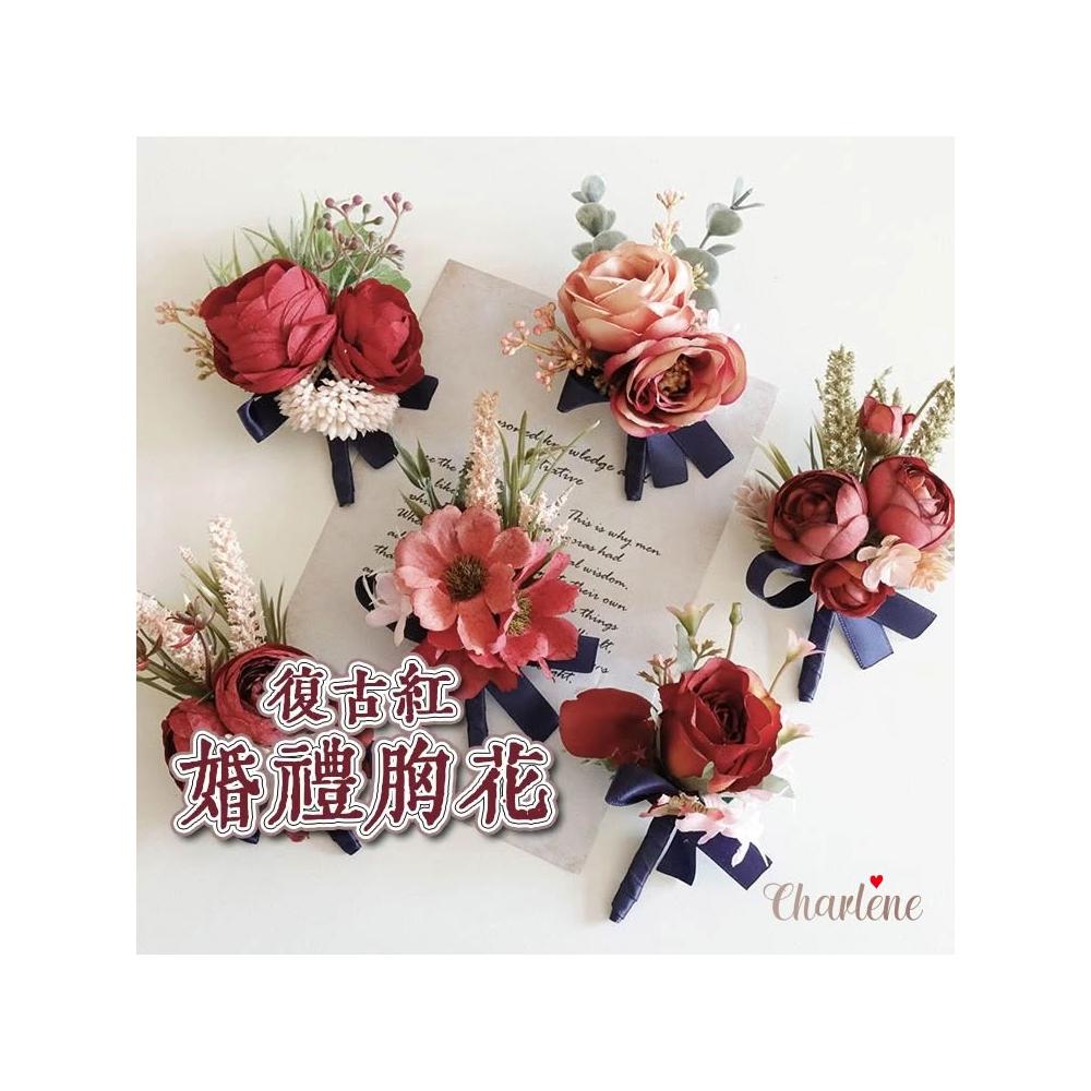胸花 結婚胸花 手腕花 婚禮手腕花 婚禮胸花 婚禮用胸花 嘉賓胸花 仿真胸花 復古紅胸花